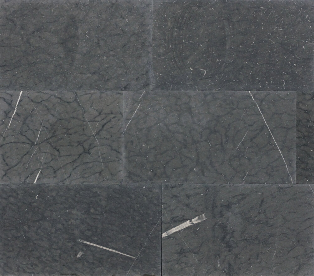 Karaktär: Varierande material med saltådringar (genomskinliga streck), kristaller, fossiler och öppna strukturer. Dessa är naturliga och förväntas förekomma i materialet. Dessa strukturer kan kännas med en nagel på ytan.